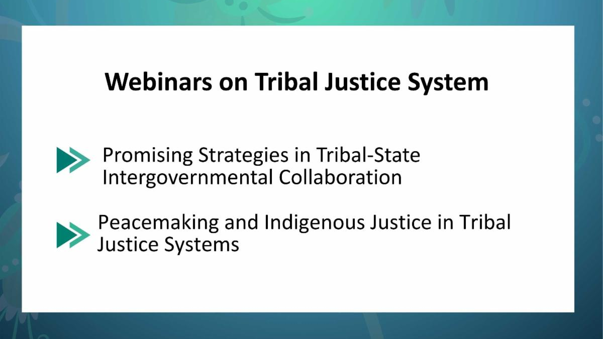 These two pre-recorded 60-minute webinars highlight culturally rooted practices, intergovernmental collaborations, and innovative approaches to justice in Tribal communities. Learn from Tribal judges and legal experts on how to strengthen Tribal sovereignty through culturally relevant justice practices.